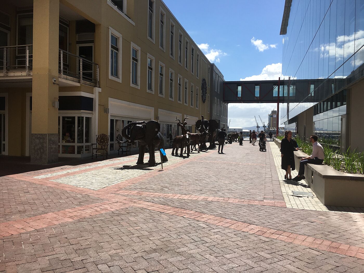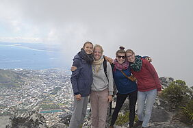 It was grey. Everywhere. Overhead, underfoot, left, right, front, back. We were standing above Cape Town. Literally. At least, we assumed that we were doing this because we did not see anything. Hold on, there was a small hole in the cloud cover. A patch of blue showed up. The first buildings appeared: the stadium, the Victoria-and-Albert Waterfront, the harbor. Lion’s Head and Signal Hill slowly emerged from the clouds. Together with Devil’s Peak and Table Mountain these two landmarks dominate the skyline of Cape Town.