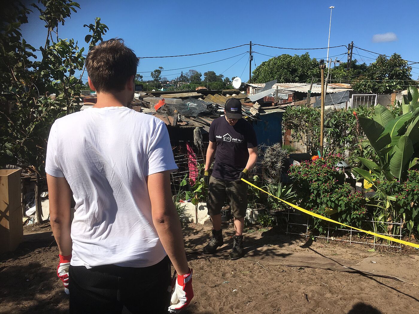 The noisiness of the Makerspace found its counterpart in the sound of the concrete truck pouring the concrete into wheel barrows. As we only have a path with the width of 1.10 meters we had to take the concrete to the prepared foundation formwork with muscle power. The boys turned into machines beating the speed of the concrete truck. In basically no time the foundations were poured, compressed and leveled. The second load followed in the afternoon of the following day. It was supposed to be delivered ion the morning, but hey, we are still in South Africa. At least everyone of the site team got to know the real South African experience of „Waiting“ now. To not fall asleep the last two foundations were “race-digged“, the last formwork was more or less improvised and Lady, Khustas dog, got a lot of attention.