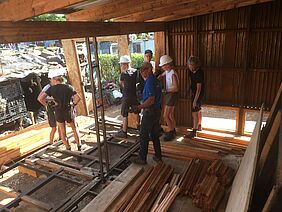 Despite the long night, the amount of drinks and the fact that most of us had less than five hours of sleep, everyone was up and ready for work early in the next morning. Wall elements and roof structure had to be installed, the flooring needed to be done, interior walls were set up, heaps of small stuff and details needed preparation like the facade design, the window frame, the folding doors and the hatches. Side by side one group started to tidy up the Makerspace to have everything done and ready by Friday.