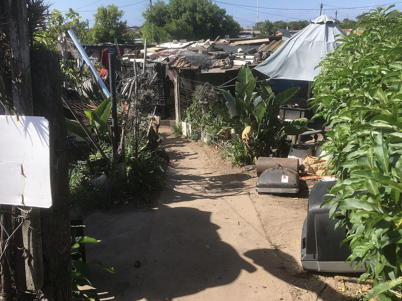 I jump off the truck. A plastic bottle cracks under my shoes, one of the many surrounding the truck. One of the many covering Walmer. Rubbish is a, if not the problem. Nearly every free space is used as a dumping site. Whole properties are covered with a layer of plastic, paper and tin. Trash is piling up in corners, street gutters and open fields.