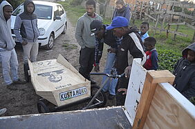 It started four days earlier with the task of designing and building a new push cart for a waste picker from Walmer Township. His name is Khululekile Moko, known as Khusta or Wilson. After he lost his job he started collecting recyclable trash to make a living for himself and his wife.