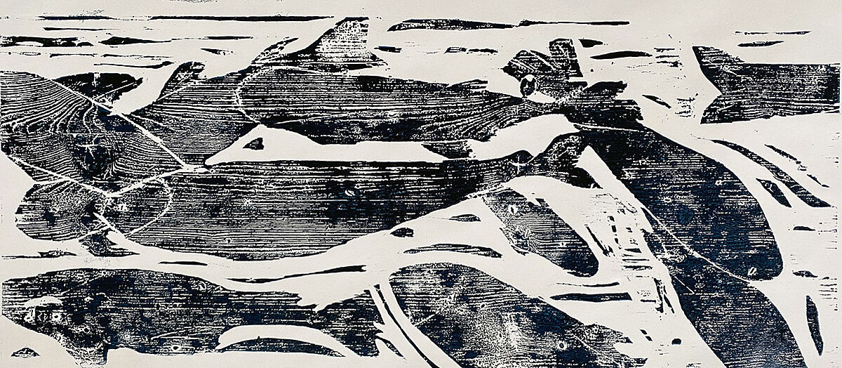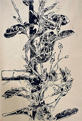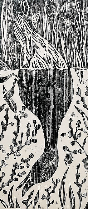 Unweit vom Wismarer Stadtzentrum entfernt, umringt von mehrspurigen Straßen, Schrebergärten, Wohnhäusern, Bahngleisen und einer Autobahn, liegt der Mühlenteich. Dieses artenreiche Biotop suchten wir in diesem Seminar mehrfach zu Fuß auf. Die Studierenden beobachteten Prozesse, Phänomene, Formen, Farben und Einflüsse des Menschen. In situ untersuchten wir Ausschnitte des Naturraums und rissen sie zeichnerisch heraus. Kraftvoll, klar und direkt wurden diese Ausschnitte anschließend in Holzschnitte übertragen. Jeder Schnitt war eine Entscheidung. Holzschnitt ist ein Low-Tech-Medium und eine der ältesten Formen der Druckgrafik und Informationstechnologie. Kunsthistorische und literarische Exkurse begleiteten das Seminar vertiefend.
