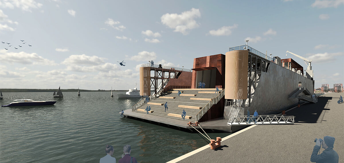 Das floating theater zeigt in diesem Entwurf eine mögliche Lösung, zukünftige kulturell wertvolle Gebäude vor den Klimaherausforderungen zu schützen und mit ihnen umzugehen. Es schafft einen attraktiven Ort für die Bevölkerung, das den vorhandenen Stadtraum mit Qualität ergänzt. Die amphibische Bauweise entkoppelt den Entwurf vom Land und lässt ein Verschleppen zu. Somit können sich die Theater an der Ostsee einen weiteren modernen Theaterraum teilen. Dies wirkt sich sowohl positiv auf die Theaterkultur im Ostseeraum aus, als auch auf den Finanzhaushalt der Theaterhäuser.