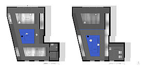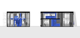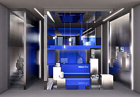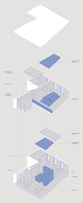 Der Name „blancoffee“ verbindet die Reinheit des Porzellans („blanc“) mit der Wärme und Geselligkeit von Kaffee. Im Mittelpunkt steht die Kunst des Porzellans: In einer offenen Werkstatt können Besucher das traditionelle Handwerk erleben, an Workshops teilnehmen oder einzigartige Gefäße direkt vor Ort erwerben. Wechselnde Ausstellungen zeigen Werke von Künstler*innen und limitierte Editionen, die den Raum stetig neu beleben. Die Innenarchitektur ist minimalistisch und präzise auf die Geometrie des Raumes abgestimmt. Beton, Stahl und Spiegel schaffen eine ruhige, hochwertige Bühne für das Porzellan. Lichtinstallationen setzen gezielte Akzente und rücken die filigranen Objekte ins Zentrum. Der zentral platzierte Tresen bildet das verbindende Element zwischen Werkstatt, Ausstellung und Café – ein architektonisches Statement, das Handwerk und Genuss auf natürliche Weise zusammenführt.