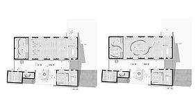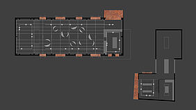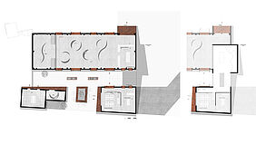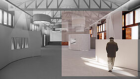 Die Halle ist als vielseitiger Veranstaltungsort konzipiert. Modulare Wandelemente ermöglichen flexible Raumnutzungen für Ausstellungen, Vorträge oder kulturelle Events. Große Fensterflächen sorgen für Transparenz und Offenheit, während akustische Deckenelemente die Klangqualität verbessern. Besonders hervorzuheben sind die Falttüren der Halle, die das Leben innerhalb des Raumes nach draußen tragen und die Grenze zwischen Innen- und Außenraum aufheben. Diese Türen fördern ein lebendiges und dynamisches Miteinander und tragen zur Schaffung eines pulsierenden kulturellen Zentrums bei.