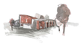 Das architektonische Konzept vereint Tradition und Moderne. Historische Dachbalken aus der ursprünglichen Struktur des Gebäudes werden sorgfältig in das neue Design integriert. Sie bewahren die Geschichte des Ortes und setzen einen reizvollen Kontrast zur zeitgemäßen Gestaltung.