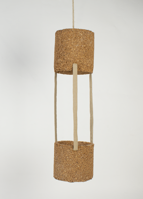Wussten Sie, dass eine Zwergfledermaus in eine Streichholzschachtel passen würde? Etwas größer ist die „Flatterstube“ von Lea Becker (Masterstudiengang Innenarchitektur) aber schon. Ihre experimentelle Fledermausbehausung aus gepresstem Korkgranulat bietet den Fledermäusen im oberen Element eine bequeme Unterkunft, im unteren Element findet eine Pflanze Platz, die wiederum Insekten anlockt, die der Fledermaus als Nahrung dienen, der Fledermauskot dient der Pflanze als Düngemittel.