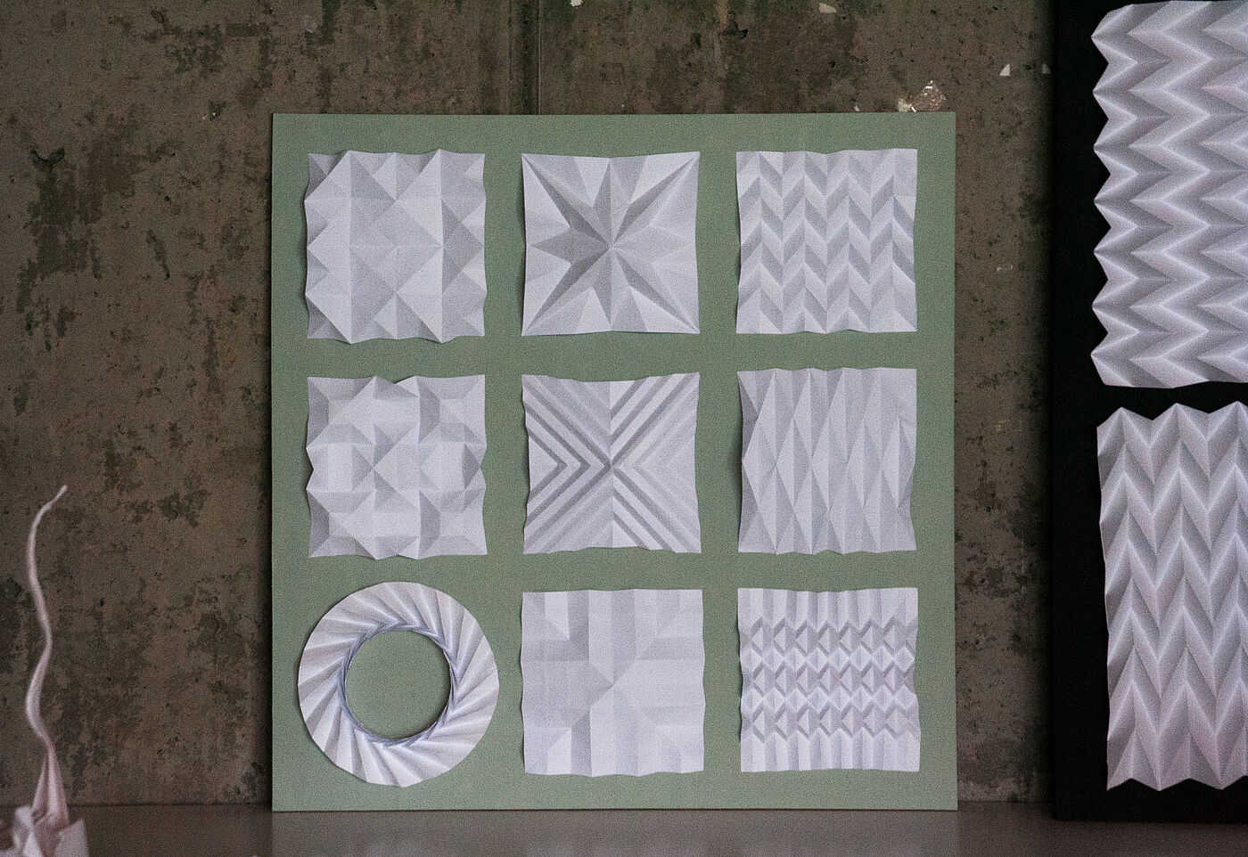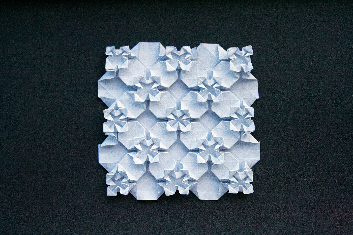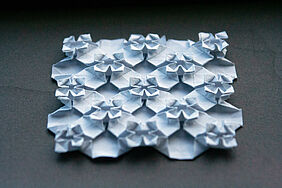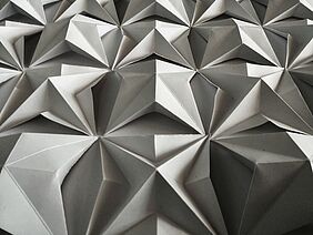 ORIGAMI TESSELATION STUDIE Eine gelungene Origami Tessellation erfordert sowohl die Fähigkeit, das gewünschte Muster präzise zu falten, als auch die Auswahl des passenden Papiers - angepasst an die Komplexität des Designs. Entscheidend sind zudem eine sorgfältig gewählte Papiergröße und ein passendes Falt-Raster als Grundlage. Die Technik verlangt viel Zeit, Konzentration und Geduld. Besonders faszinierend finde ich die Vielseitigkeit, mit der sich aus der gleichen Ausgangsform unterschiedliche Ergebnisse erzielen lassen - sowie die spannenden Wechselwirkungen von Tiefe, Transparenz und Opazität, die durch die mehrschichtigen Faltungen entstehen. Anna Schopmans