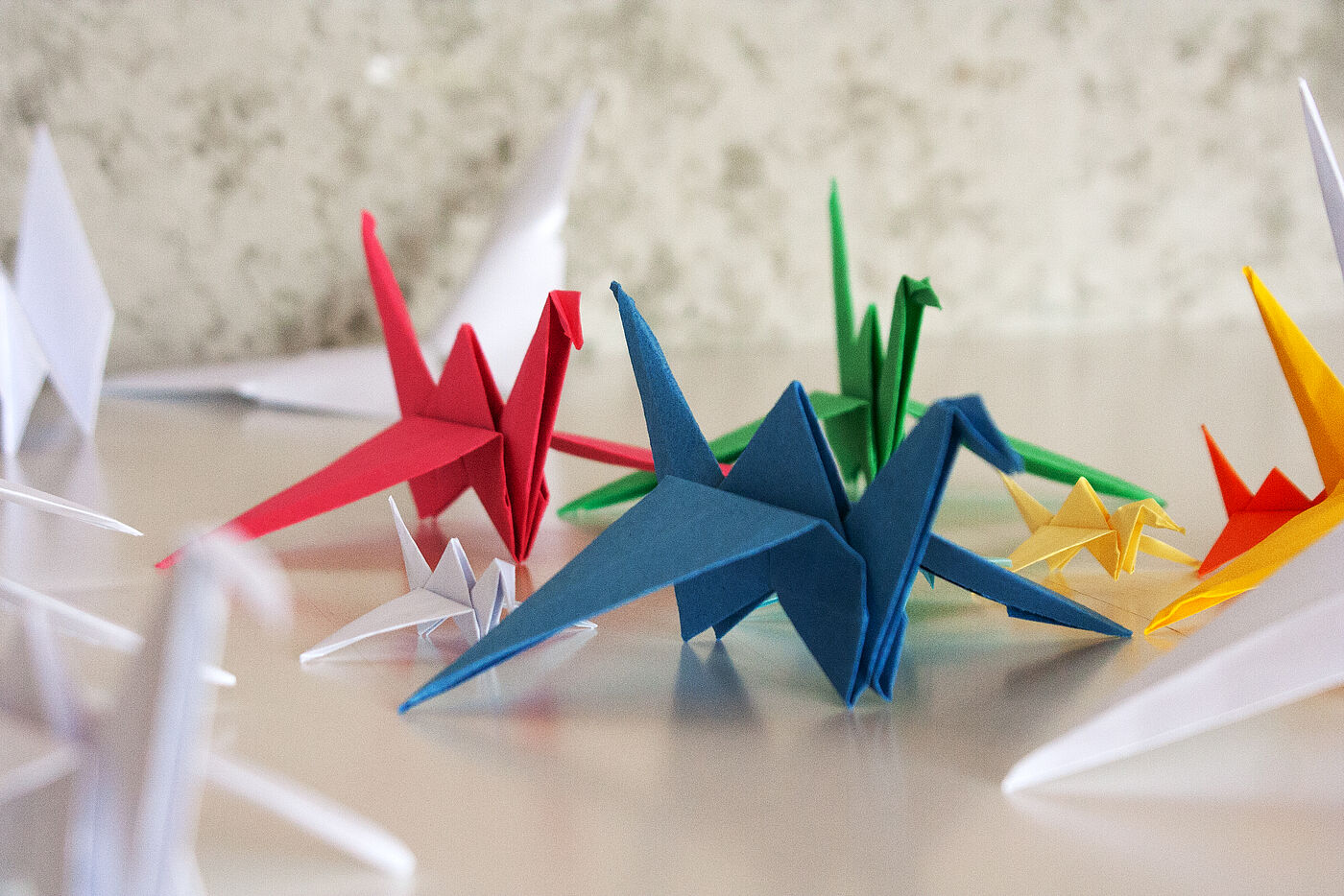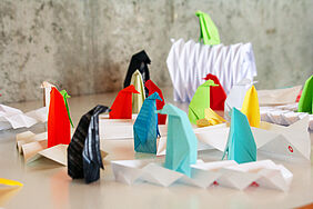 Papier wird oft unterschätzt und bestenfalls als Verpackung, Wegwerfmaterial eingesetzt, dabei ist es leicht, dünn, recycelbar, flexibel, stabil, fest und aus nachwachsenden Rohstoffen. Man kann es formen, falten, schneiden, falzen, prägen, knicken, … um zu neuen Formen zu gelangen, dadurch können auch Produkte mit einer beachtlichen Stabilität, Kraft und Statik entstehen. Aus Papier lassen sich Räume, Gebäude, Kleidungsstücke, Objekte, Skulpturen u.v.m. entwickeln und entfalten. In der Architektur findet das Prinzip des Faltens Anwendung bei weit gespannten Tragwerken, temporären Bauten und bei Fassadenelementen. Im Rahmen der Projektwoche haben wir eine Woche lang Papier geknickt, gefaltet, gefalzt.
