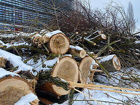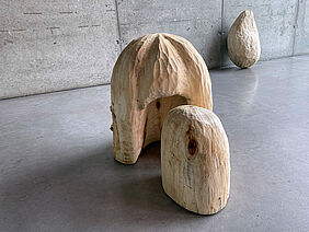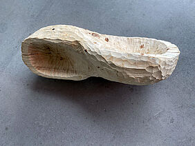 Frisch gefälltes Pappelholz, scharfe Schnitzeisen, eine verbindende Idee und los gings. Das Rohe wurde gekocht oder das Wilde gezähmt, kultiviert, in Form gebracht. Oder sind nicht das Natürliche und das Artifizielle ein und dasselbe? Wir begaben uns auf eine Spur: unter Bäumen, untersuchten ihre gewachsenen Strukturen zeichnerisch, um dann Schicht für Schicht im Holz zu graben und Formen freizulegen.