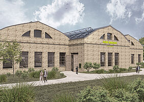 Die alte Gebäudehülle bleibt in ihrer architektonischen Repräsentanz erhalten, indem eine neue innere Raumstruktur eingefügt wird. Diese orientiert sich an dem Rhythmus der alten, raumweisenden Elemente wie dem strukturierenden Stahlstützenraster und dem Dachtragwerk. Auch die historischen Gleisstrukturen werden als richtungsweisende Verbindungen in das Raumkonzept miteinbezogen. Durch das denkmalgerechte Raum-in-Raum Entwurfskonzept entsteht ein Dialog zwischen alten und neuen Raumstrukturen, welche die Halle systematisch in neue Zonen unterteilen und damit flexibel nutzbar machen.