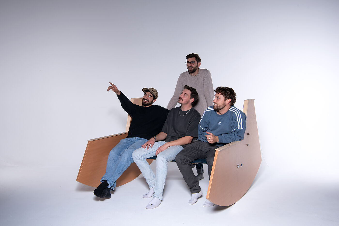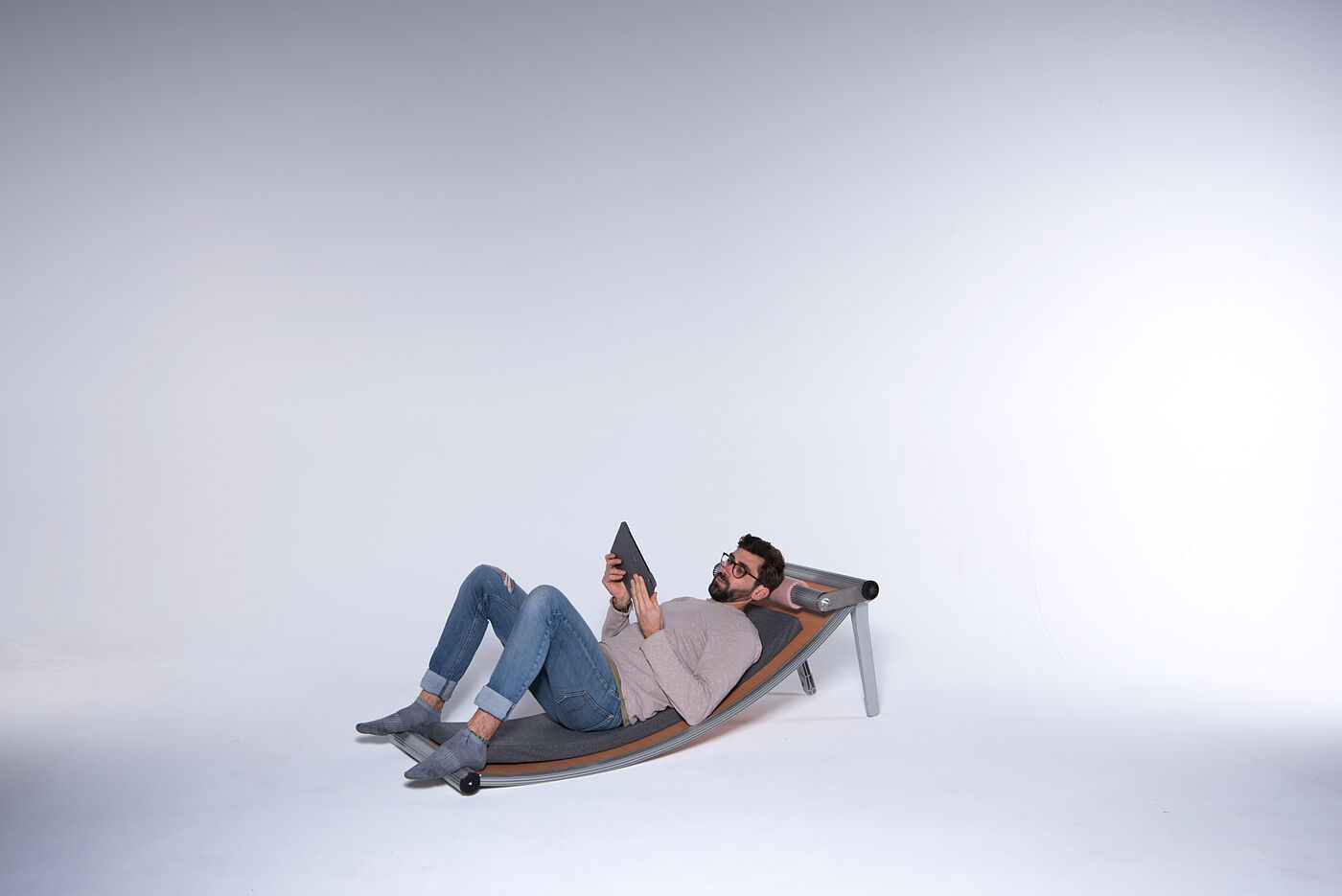 3-Sitzer Schaukelbank und Liegemöbel mit verstellbarer Kopfstütze, Entwürfe von Kilian Ebeling, Furkan Erenkya, Nick Cäsar Körbelin, Kumaresan Muthukumarasamy, Emil Pflug