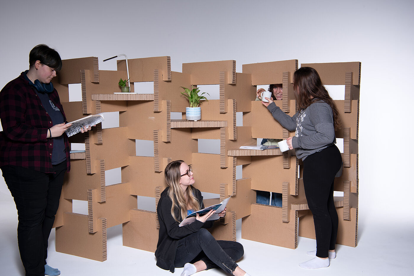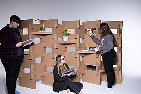 Raumteiler aus modularen Steckelementen von: Mailin Bögge, Nele Braun, Lina Alia Büch und Patricia Silva Rocha