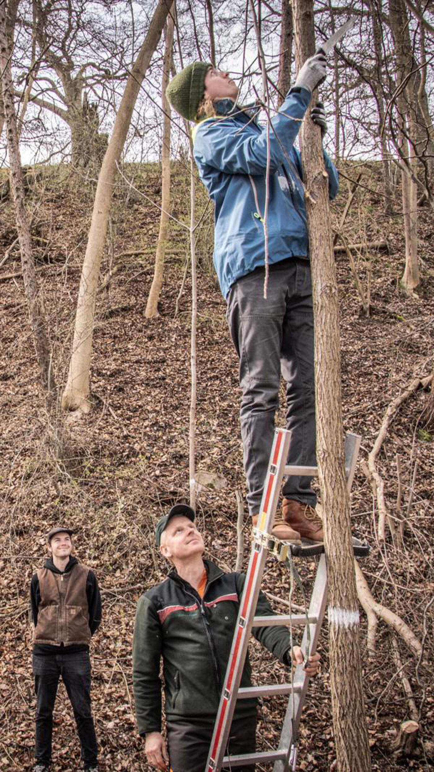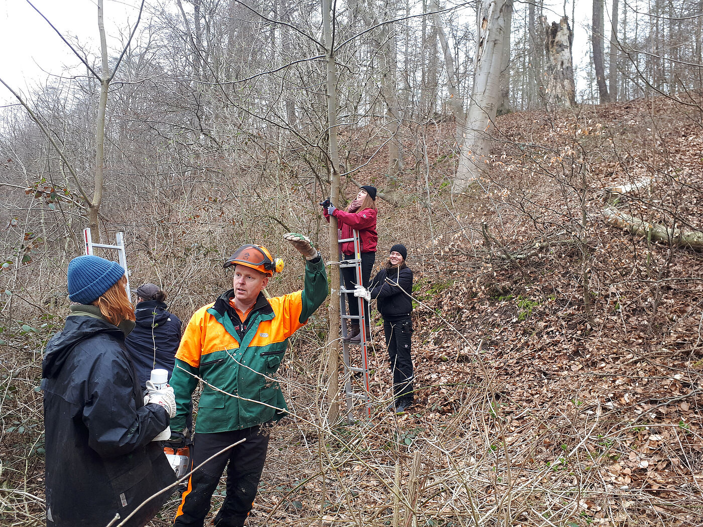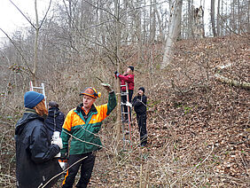 Als kleines Extra haben wir uns mit dem Forstwirt Michael Rost auf Plauer Werder getroffen, einer Insel im Plauer See und dort einiges über die Schwarznuss erfahren. Dabei stand neben der Theorie auch die praktische Unterstützung bei der Wertästung von Schwarznüssen auf dem Programm.
