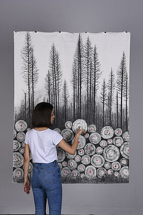 Zu Fuß unterwegs zu sein, ist ein Weg, um einen Ort, eine Landschaft zu erfahren und zu verstehen. Unmittelbar entstehen Verbindungen zwischen Geographie, Körper, Zeit und Materie. Die Studierenden beobachten Prozesse, Phänomene, Formen, Farben und Einflüsse des Menschen in der Natur und erhalten somit besonders einen Bezug zum Material Holz. Eindrücke werden direkt in situ gezeichnet. Der Wanderweg wird mittels Mapping, Zeichnung, Text, Tonaufzeichnung und Fotografie dokumentiert. Abschließend werden die poetischen, subtilen Ergebnisse in einer gefalteten Broschüre präsentiert.