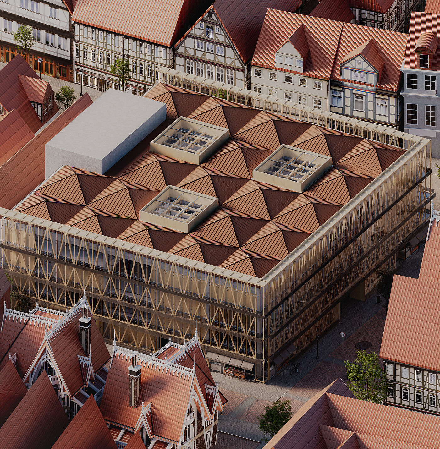 Insgesamt entwirft das Projekt ein sozial inklusives und ökologisch sensibles Wiederverwendungsmodell, bei dem ein ehemaliges Symbol des Konsums zu einer produktiven öffentlichen Infrastruktur umgestaltet wird. Der Entwurf bewahrt nicht nur den architektonischen Wert, sondern trägt aktiv zur kulturellen, wirtschaftlichen und ökologischen Erneuerung der Celler Innenstadt bei.