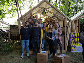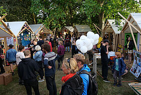 Die nachhaltige und vollständig rückbaubare Konstruktion der Häuser besteht aus Dachlatten, Europaletten und Pappwabenplatten. Die Befestigung erfolgt mit Spanngurten und Klettverschlüssen. Eine gespannte Plane bildet das Dach. Um sie platzsparend zu lagern und jedes Jahr einfach aufbauen zu können, sind die Konstruktionen — ähnlich einem Zollstock – komplett zusammenklappbar. Individuelle Innenausstattungen werden von den Standbetreibern flexibel ergänzt und verleihen dem Dorf ein vielfältiges und buntes Erscheinungsbild. Mit diesem Engagement setzt die Hochschule ein deutliches Zeichen für Demokratie und Toleranz.