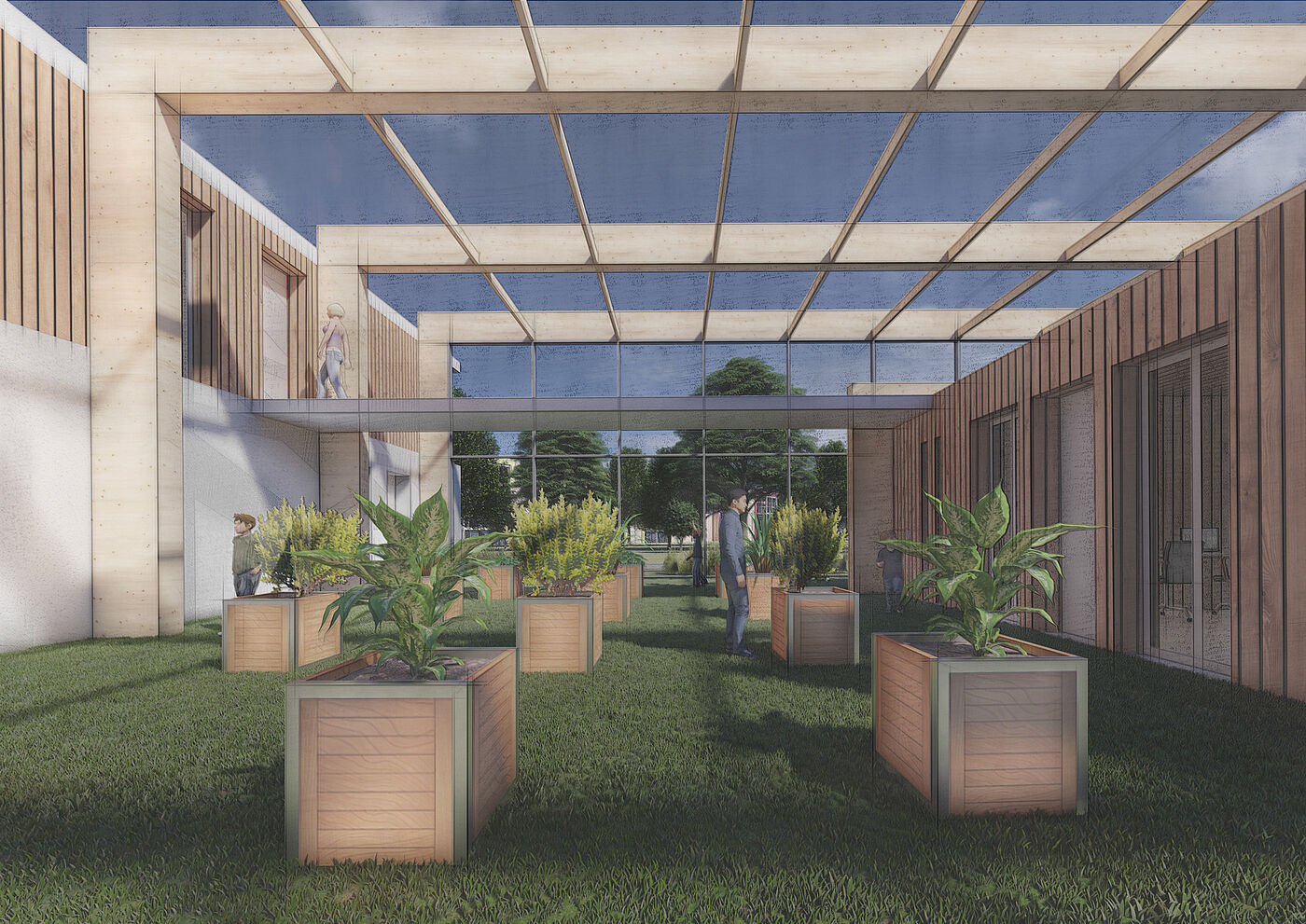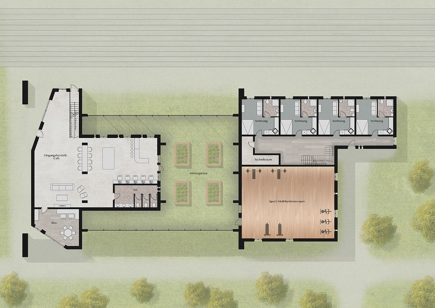 Anhand der Konzeption eines hybriden Gebäudes zwischen Jugendfreizeitzentrum und einem Jugendwohnheim, soll kenntlich gemacht werden, inwiefern sich die Architektur bzw. der Raum als pädagogisches Mittel auswirken kann. Mit Schwerpunkt auf dem Aspekt „Architekt als dritter Pädagoge“ wird außerdem die Nachhaltigkeit und allg. Langlebigkeit hinsichtlich der Ökologie des Entwurfs betrachtet. Der Gesichtspunkt Ökologie soll bei dem Entwurf als automatisch-pädagogisches Mittel mitschwingen und erforscht werden, ob der Raum auch als Pädagoge wirken kann.