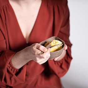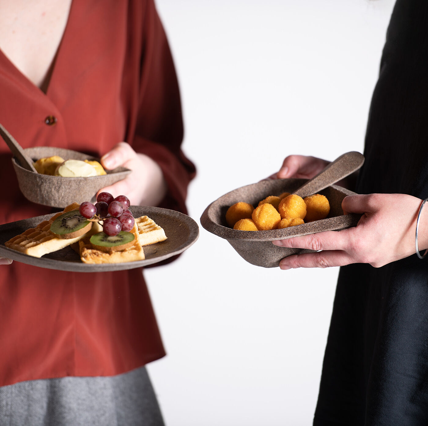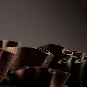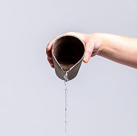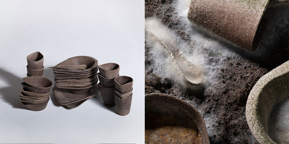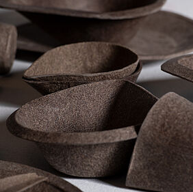 Der Name KURO setzt sich aus der aus dem slawischen stammenden Bezeichnung Kukuruz für Mais und dem Begriff Durum für Hartweizen zusammen, was die beiden Hauptbestandteile des entwickelten Materials sind. KURO ist eine kompostierbare Einwegproduktserie für Speisen und Getränke, die an das Essen und Trinken unterwegs im Alltag angepasst ist. Die Produkte der Serie wurden so ausgewählt, dass sie mit einem großen Spektrum an gängigen Fast Food und Take Away Produkten kompatibel sind und dennoch für andere Szenarien, bei denen Einwegprodukte genutzt werden, eingesetzt werden können. Das für die Produkte entwickelte Material zersetzt sich unter Einfluss verschiedener Umweltfaktoren wie Temperatur, Niederschlag und dem Einfluss verschiedener Mikroorganismen rückstandslos und in kurzer Zeit und stellt dabei keine Bedrohung für das jeweilige Ökosystem dar. Dabei erfüllt es jedoch alle Anforderungen eines konventionellen Einweggeschirrs. Die Materialstärken wurden so gewählt, dass die Produkte stabil sind und dem Gewicht der Speisen und Getränke standhalten, ohne sich zu verformen und dennoch als haptisch angenehm empfunden werden. Die Formsprache der Produkte hat den natürlichen Faltenwurf des als Platte vorliegenden Materials als Ursprung, der entsteht, wenn das zweidimensionale Material in drei Dimensionen verformt wird. Die Formgebung der Gefäße ist an das sichere Halten mit einer Hand angepasst, sodass im Stehen, Sitzen oder wenn gewünscht im Laufen gegessen werden kann. Mit der verbleibenden freien Hand kann gegessen werden, entweder mit den Fingern oder mithilfe des Kombibestecks.