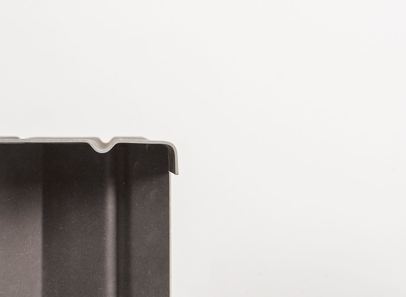Ziel dieser Arbeit war es, das Material, das um 1855 seinen Ursprung fand, aus der Vergessenheit zu holen und es in einem neuen Anwendungsbereich, dem Möbeldesign, als vollflächiges Material zu integrieren. Die Materialstärke der Objekte liegt zwischen 3,2 und 4 mm – 4 mm Vulkanfiber wiegt 1,26 kg/m². Zum Vergleich: 4 mm Birkenfurnier wiegt 2,72 kg/m².