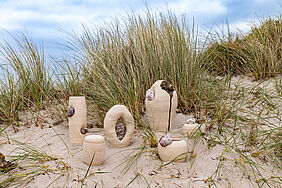 Die reduzierte Gestaltung der Keramikobjekte reflektiert den Ursprung des Materials und erinnert an die natürliche Herkunft der Steine, den Ostseestrand. Die Arbeit verbindet auf innovative Weise klassische Rohstoffe mit experimentellen Ansätzen zu einem einzigartigen Design. „Melting Features“ demonstriert, dass Handwerk in der modernen Designwelt nicht nur eine historische Tradition, sondern auch eine innovative Kraft darstellt. Sie unterstreicht den Wert natürlicher Materialien und die Bedeutung desExperimentierens im Designprozess.