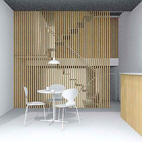 Das städtebauliche Bild eines für Japan typischen Wohnviertels zeichnet sich aus durch eine wachsende und sich ständig ändernde Blockrandbebauung mit verschiedensten Gebäudetypen. Dieser Entwurf zeigt ein solches Townhouse mit einer Grundfläche von 12 x 4 Meter. Die Grundrisse der verschiedenen Geschosse sind weitestgehend offengehalten. Unterschiedliche Bodenbeläge dienen der Zonierung und bewirken ein, der Raumfunktion entsprechendes Verhalten. Ein für den Entwurf charakteristisches Element sind die Holzlamellen. Sie sorgen zum einen für eine räumliche Trennung, lassen aber auch Licht durch und schaffen Sichtbezüge. Die Lamellen finden sich ebenso in Einbauten und in der Fassade wieder. Hier stellen sie einen Bezug vom Inneren zum Äußeren her und schaffen bei einer Festverglasung eine Möglichkeit zum Lüften ohne sichtbaren Rahmen.