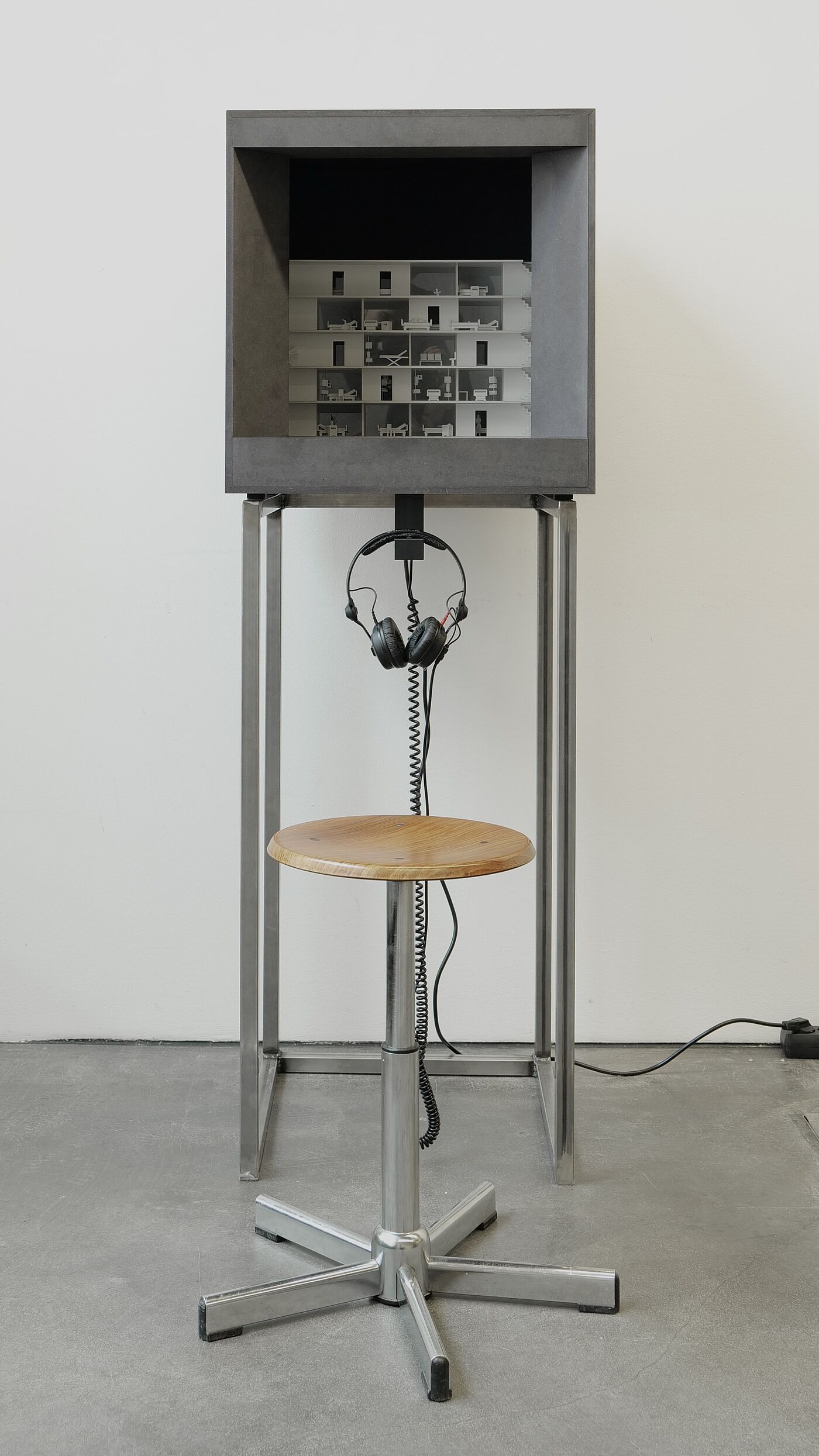 Das interaktive Objekt widmet sich einer aktuellen Herausforderung des Demografischen Wandels - dem Pflegenotstand. Die Gestaltung erinnert an einen Hybrid aus Fernseher und Theaterbühne, wobei auch die traditionelle Form des Guckkastens, der im 18. Jahrhundert beispielsweise auf Jahrmärkten als Kommunikationsmittel genutzt wurde, als Inspiration diente. Im digitalen Zeitalter wird hier eine bewusste Abkehr vom Bildschirm hin zu einem analogen Erlebnis geschaffen. Geschichten aus dem Pflegealltag, die geprägt sind von erschreckenden, traurigen, berührenden und schönen Momenten, spielen sich in der Realität hinter verschlossenen Türen ab. Dieses Objekt soll ihnen eine Bühne bieten. Ein Betrachter lauscht den Geschichten von Louis, Franziska und Ralf.