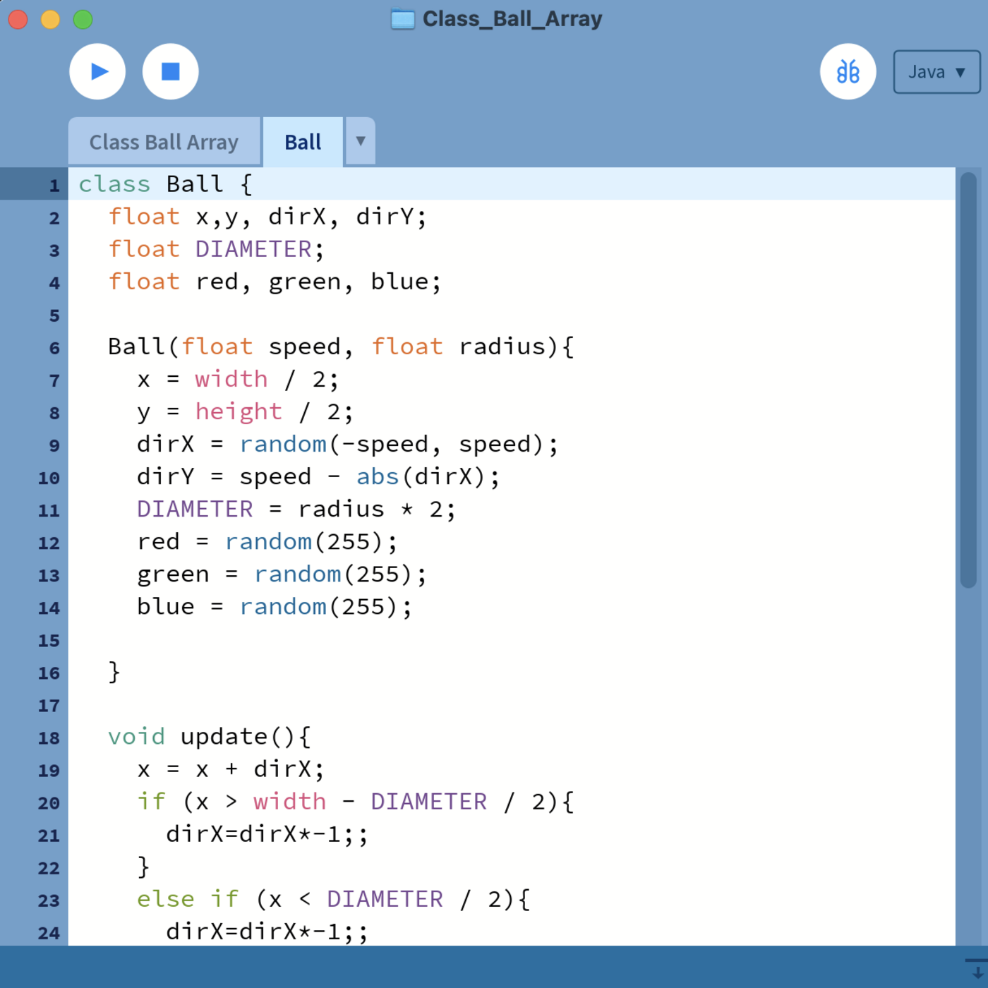 As in other programming languages, any digital application can be created in Processing. The focus is on programming static, dynamic and interactive graphics applications. The tool makes it easier to program image worlds. Typical areas of application are generative art, data visualisation and small computer games. The applications are not limited to visual functions but can be easily supplemented with sounds or external control devices to create multimedia applications.