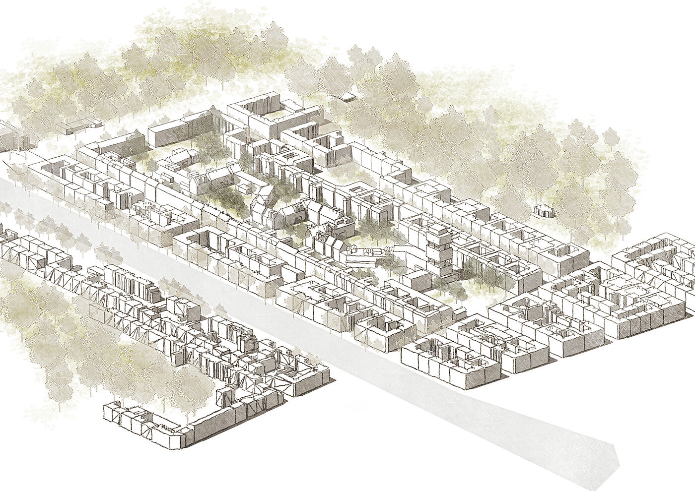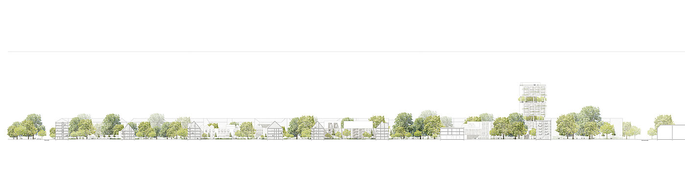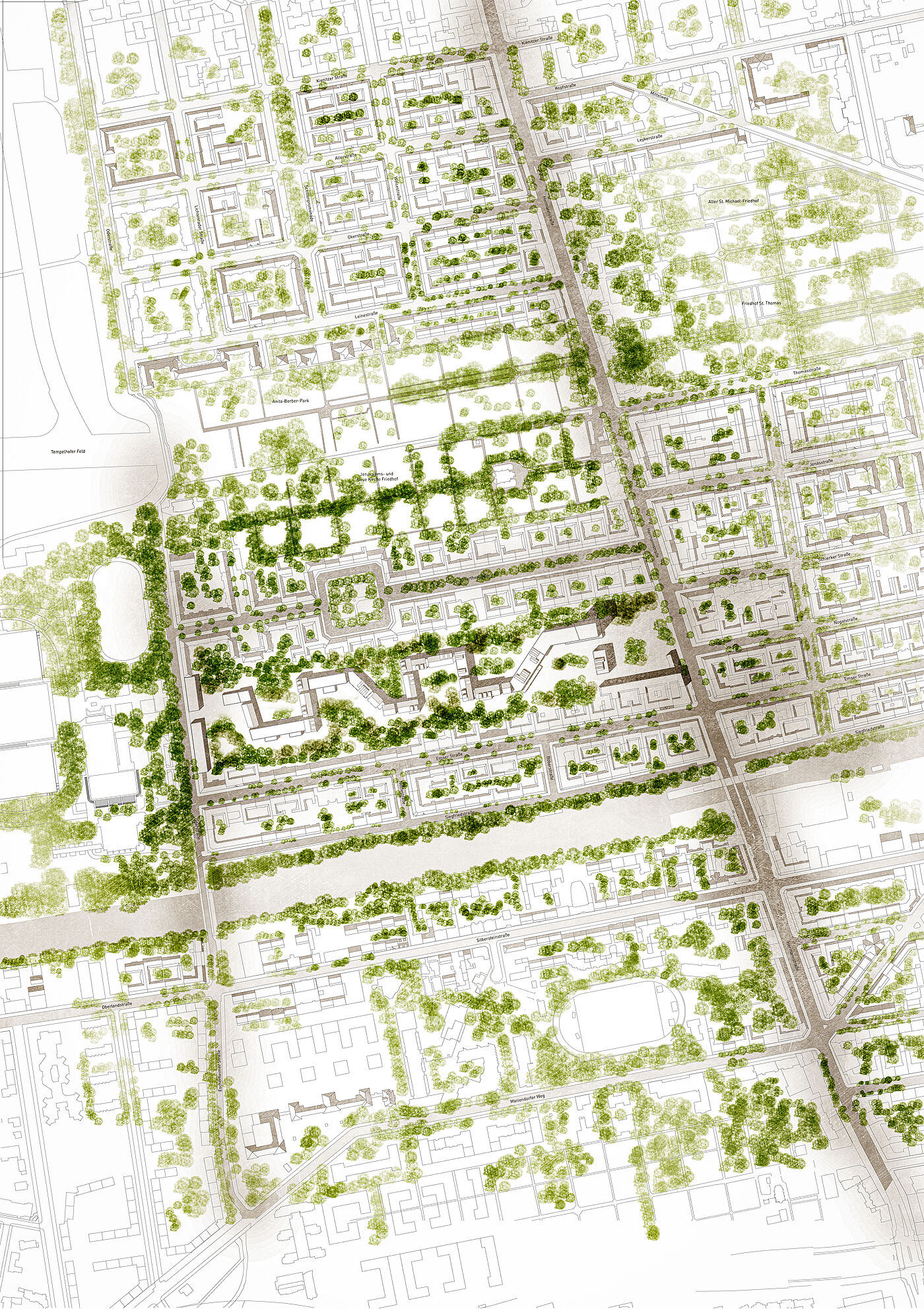 Dem Mäander gelingt es, durch seine Großmaßstäblichkeit ein kleinteiliges neues Gebiet zu schaffen. Höfe, einzelne Häuser, unterschiedliche Fassadenelemente lassen ein interessantes und atmosphärisches neues Quartier entstehen, welches den Bewohnern das Gefühl gibt, mitten in der Natur zu sein, dabei befinden sie sich mitten im belebten Berliner Stadtteil Neukölln.