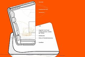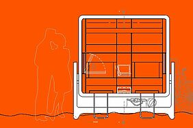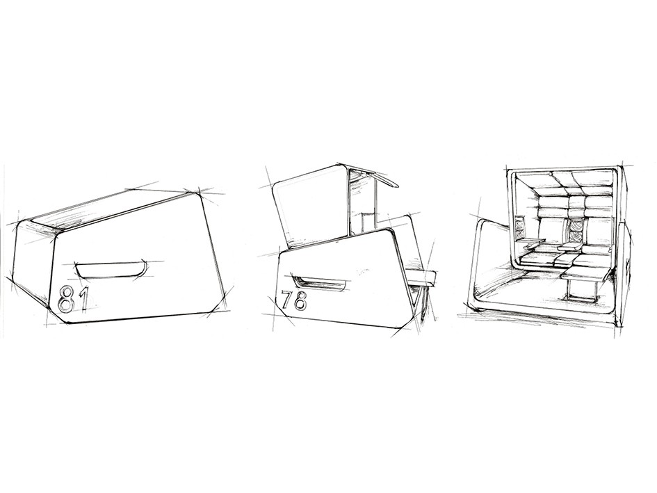 Der Strandkorb besteht aus einem unteren Korpus, in dem die Sitzschale wie eine Gondel eingehängt ist. Zum Verschließen wird die Sitzschale manuell nach unten gezogen und dreht sich über eine Achse in den Korpus formschlüssig hinein und kann verschlossen werden.