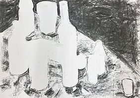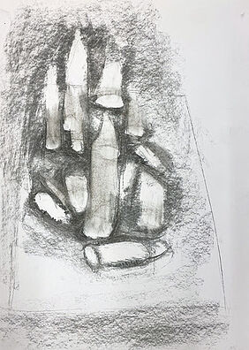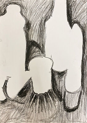 Wir begaben uns auf Spurensuche: Im Museum Barberini in Potsdam studierten wir die reiche Bilderwelt des norwegischen Malers Edvard Munch. Aus seinem Bild „Küste mit rotem Haus“ wurden vom Meer geschliffene und gestrandete Gesteine übernommen und in plastische Formen aus gewickelten Gebrauchttextilien transformiert. Diese Strandungen sind sowohl für uns als auch unsere Zeit aktuell. Denn sie sind nicht mehr nur Zeugnisse uralter Erdgeschichte sondern zunehmender anthropozäner Einflüsse. Dieses Zitieren schafft eine Synthese zwischen Wirklichkeit und Phantasie.