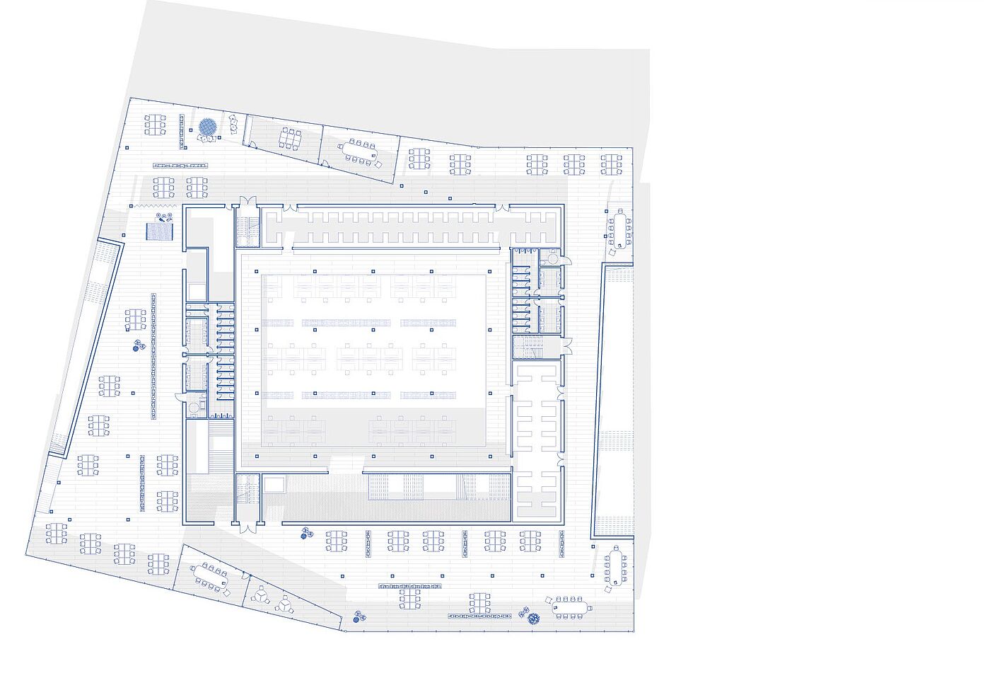 Der Entwurf beschäftigt sich mit der Bibliothek von Morgen. Hierbei steht das Konzept der Verbindung von alt und neu, sowie verschiedenen Interessengruppen im Mittelpunkt. Dafür