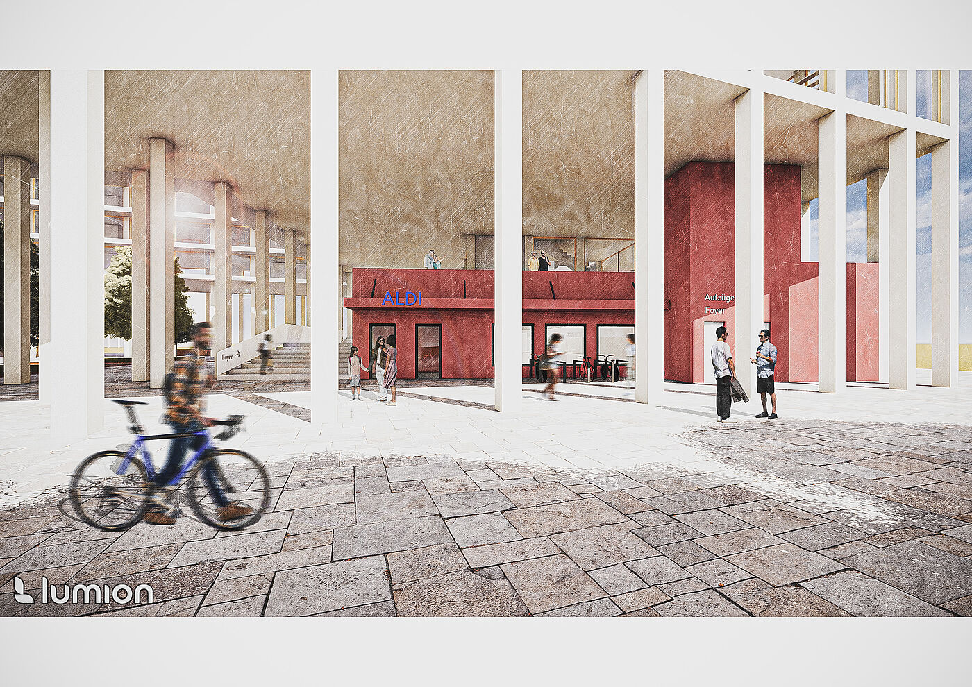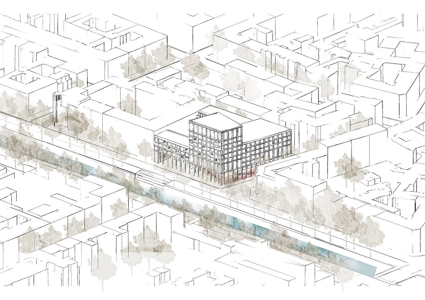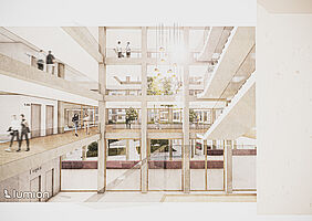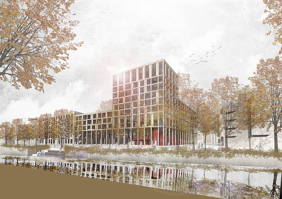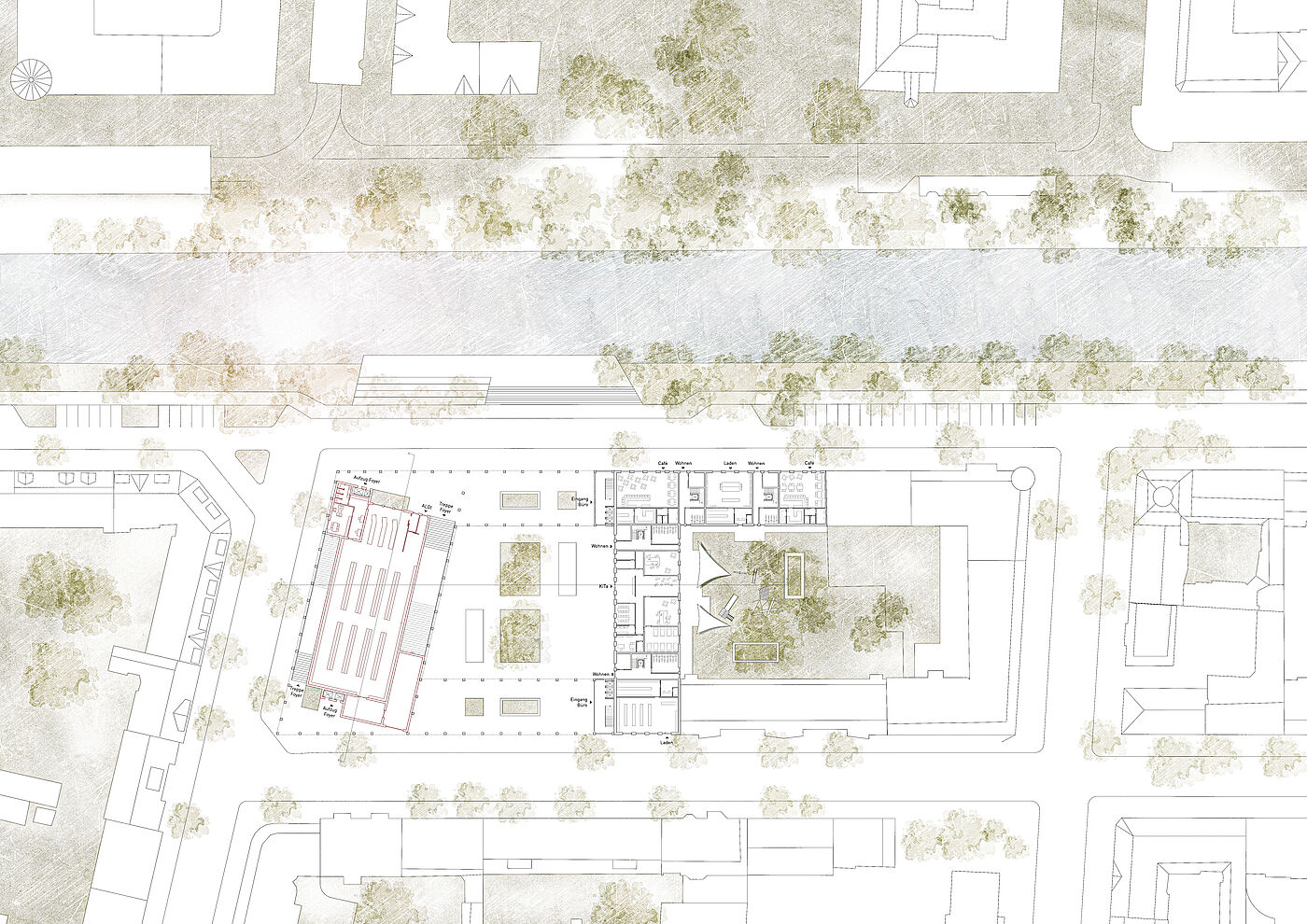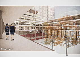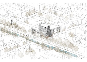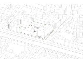 Dieser Entwurf in Berlin Neukölln forderte den Umgang mit Bestand und Neubau. Die vorherige Situation des Grundstückes war städtebaulich eher unpassend für die typische Blockrandbebauung des Stadtteiles. Die neuen Baukörper bilden zwei Höfe aus, welche sich in den Nutzungen unterscheiden. Durch eine gute Einbindung des Supermarkt-Gebäudes ist es gelungen, einen neuen Ort für Kultur, Arbeit und Wohnen zu schaffen, welcher die Menschen verbindet. Die markante Fassade und der Hochpunkt sorgen dafür, dass das neue Gebäude von vielen Richtungen aus sichtbar ist und von den Bewohnern der Stadt gut besucht wird und zu einem Herzstück der Umgebung wird.