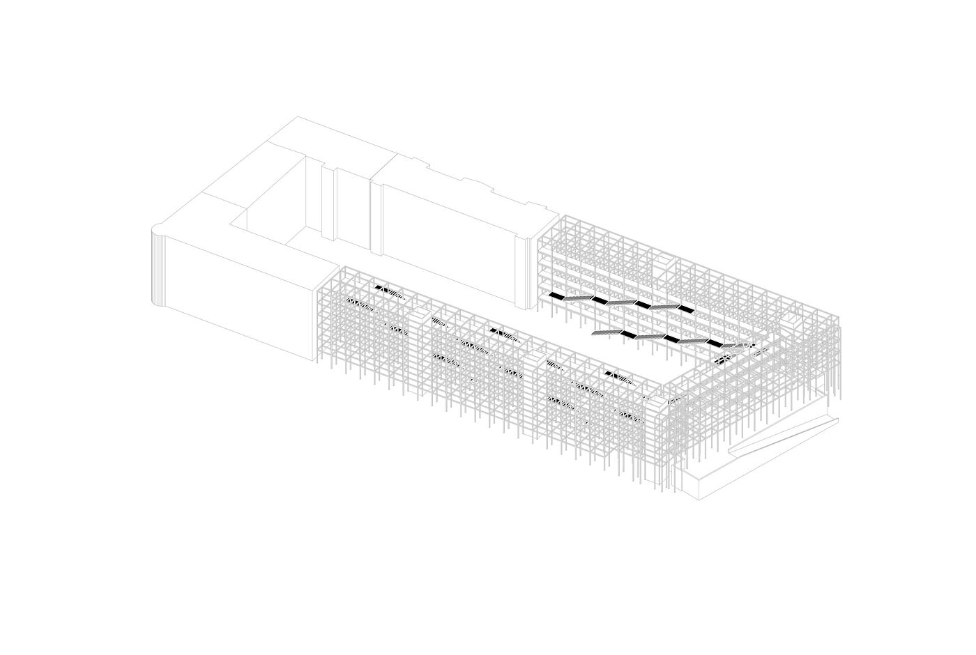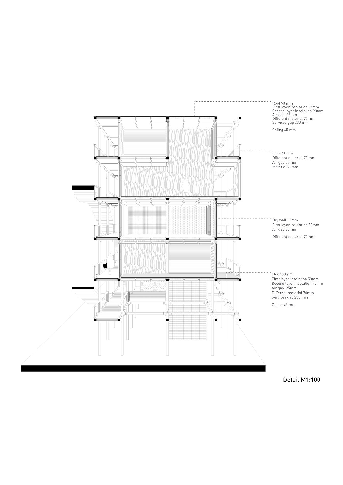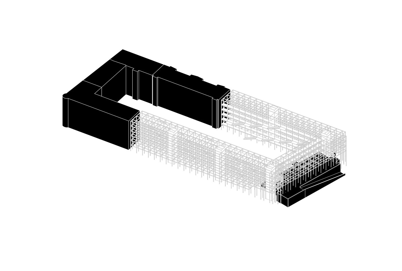 Die "Urban Matrix" ist eine flexible Struktur, die von der zyklischen Natur unserer Stadtlandschaft inspiriert ist, in der Gebäude entstehen, ihren Zweck erfüllen und schließlich neuen Entwicklungen Platz machen. Das Gebäude stellt diesen Zyklus jedoch neu dar und wird zu einem dynamischen Objekt, das sich mit den Bedürfnissen der Gemeinschaft weiterentwickelt. Während seines gesamten Lebenszyklus folgt das Gebäude den Regeln der Reduktion, der Wiederverwendung und des Recyclings. Während des Baus werden gebrauchte Materialien wiederverwendet, um ausrangierten Elementen früherer Strukturen neues Leben einzuhauchen. Dies trägt zu einer Kreislaufwirtschaft bei, in der Ressourcen geschont werden und erzeugt zugleich einen hohen Grad an Identifikation mit der dadurch entstehenden Materialisierung von Raum.