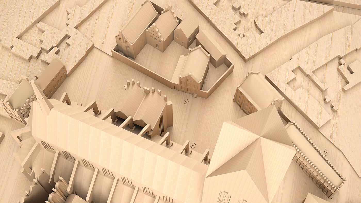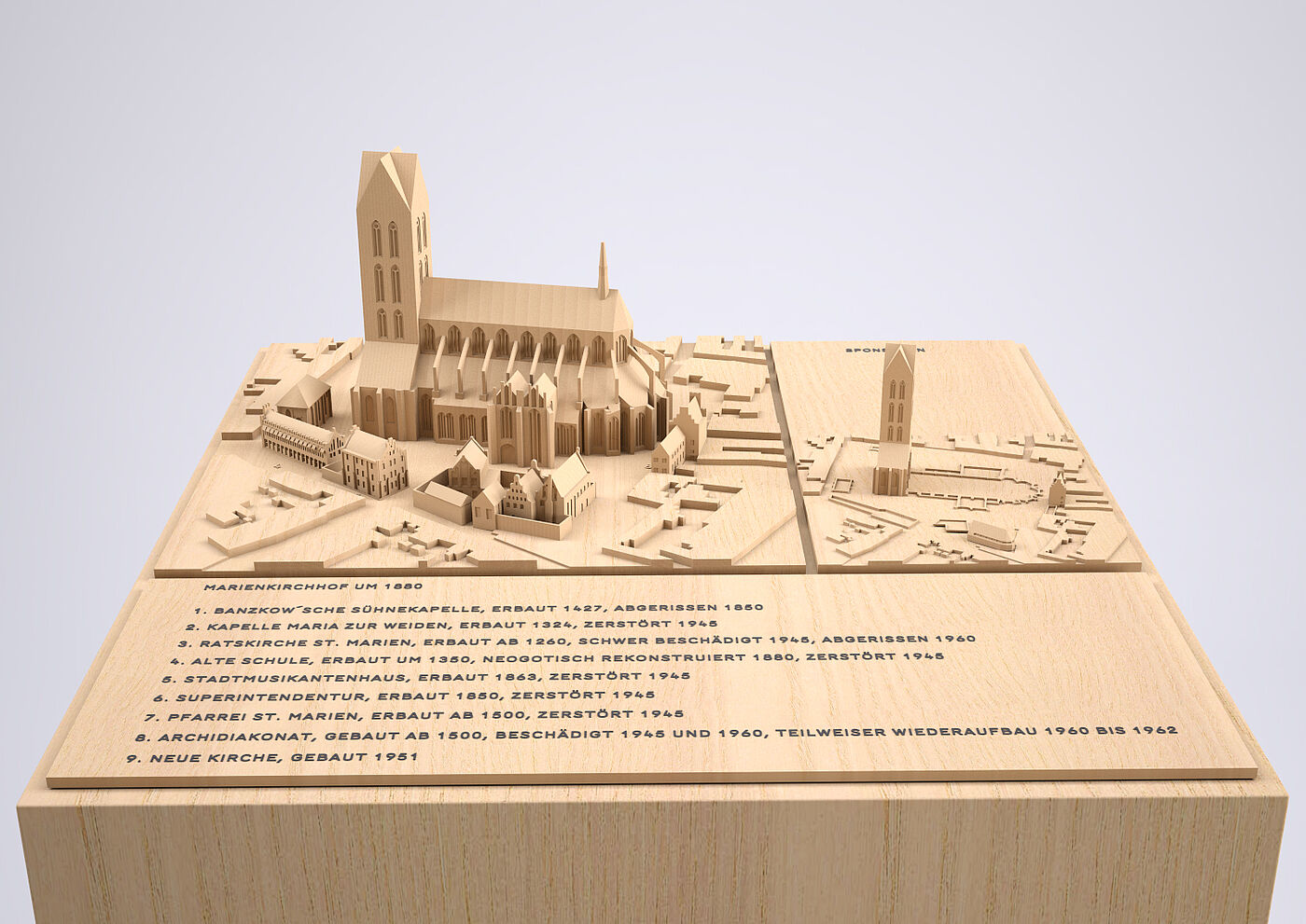 Dreidimensionales Model und 3D Druck des historischen Marienkirchhofs in Wismar. Realisierung als Metallguss in Zusammenarbeit mit der Hansestadt Wismar, dem Rotary-Club Wismar und dem BSVMV.