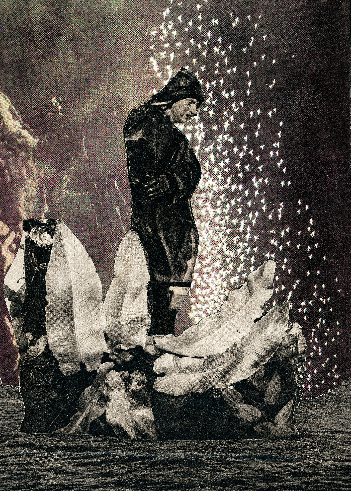 Und gleichzeitig ist die Traumhöhle auch ein Raum für die Fotos und Abbildungen, die ich nicht selbst erschaffen habe, aber die schon so lange in meinem Besitz und Teil meiner Sammlung sind, dass ich das Gefühl habe, ich hätte sie erschaffen. Es sind Fotos und andere Abbildungen die für mich besonders zu den Collagen passen und eine gewisse traumartige Atmosphäre verströmen.