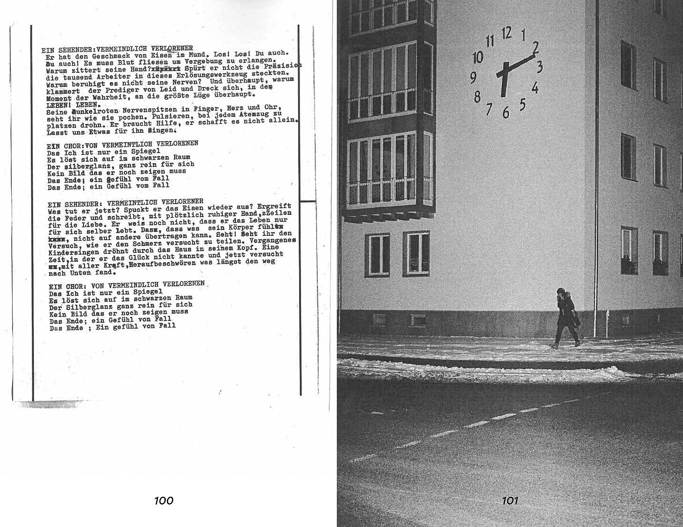 Ein Beispiel für dieses Umfeld ist eine nach generalisierten Bedürfnissen ausgerichtete Architektur. Das Individuum, mit seiner oft nicht linearen Biografie, taucht hier als störender Faktor am äußersten Rand auf. In meinen Bildern kehrt der Mensch, wieder auf die für ihn errichtete Bühne, zurück.
