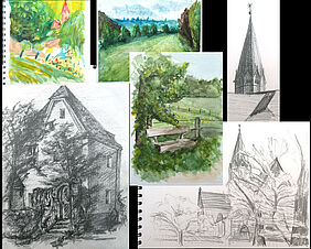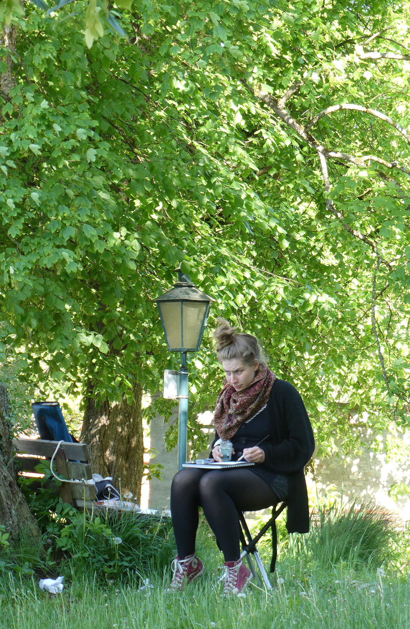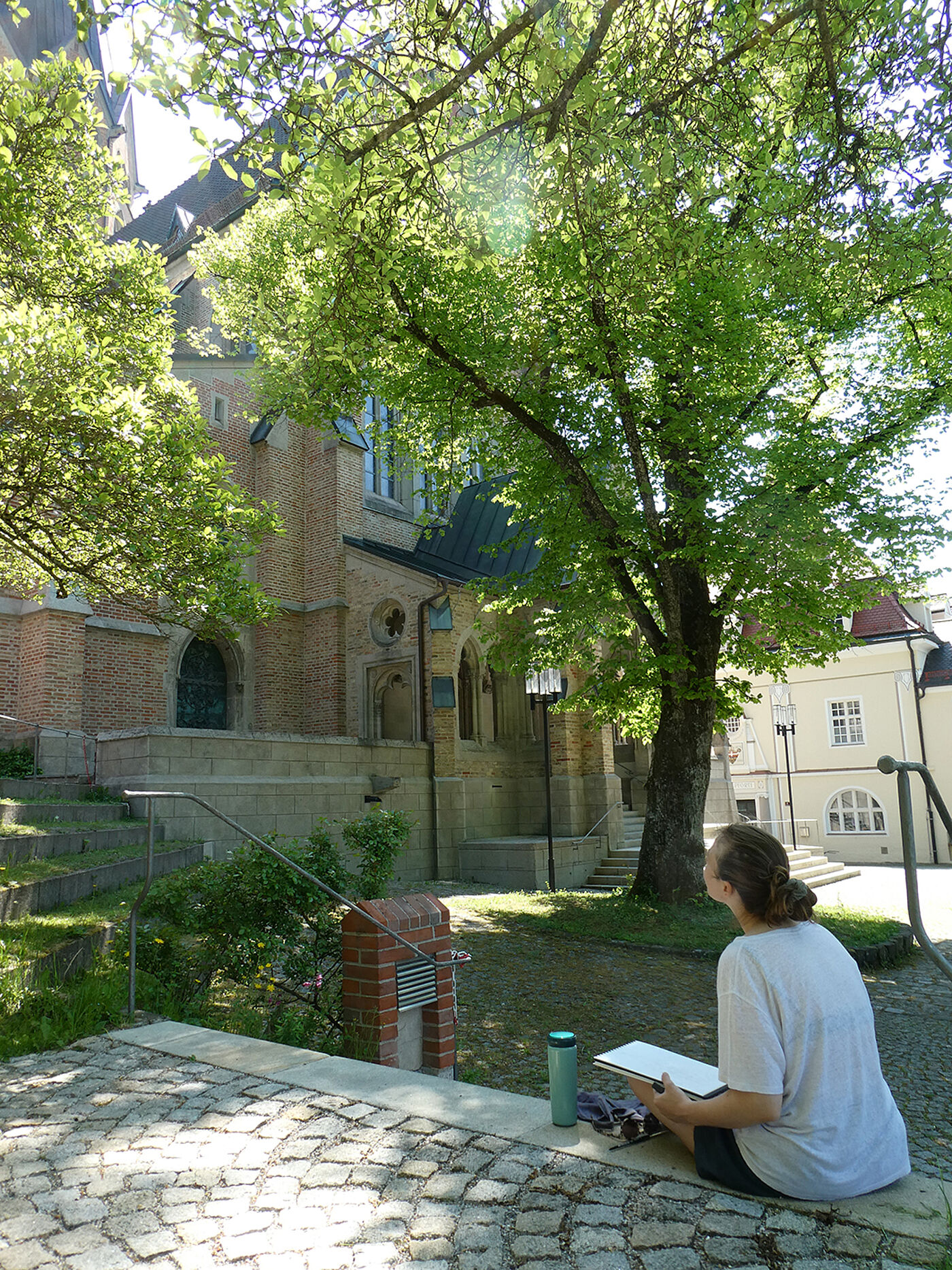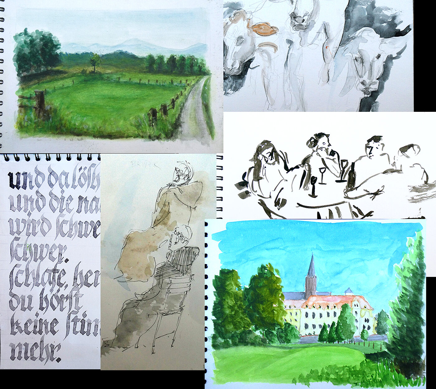 Fernab des sommerlichen Trubels, inmitten saftigen Grüns und ehrwürdiger Klostermauern, und unter Verzicht auf elektronische Endgeräte, haben wir zusammen gezeichnet, gemalt, kalligrafiert, köstlich gegessen und dabei die Gastfreundschaft der Mönche genossen.