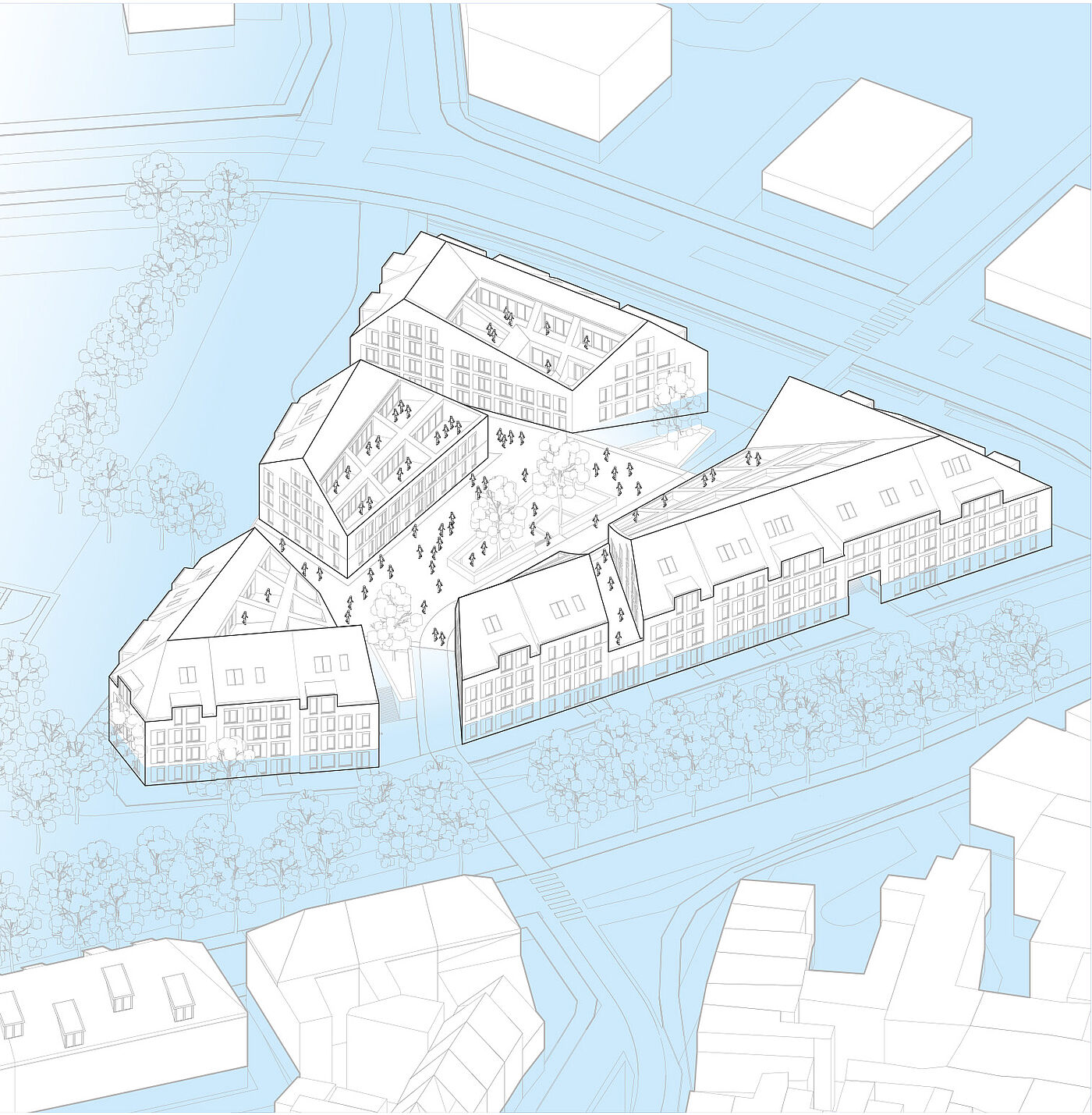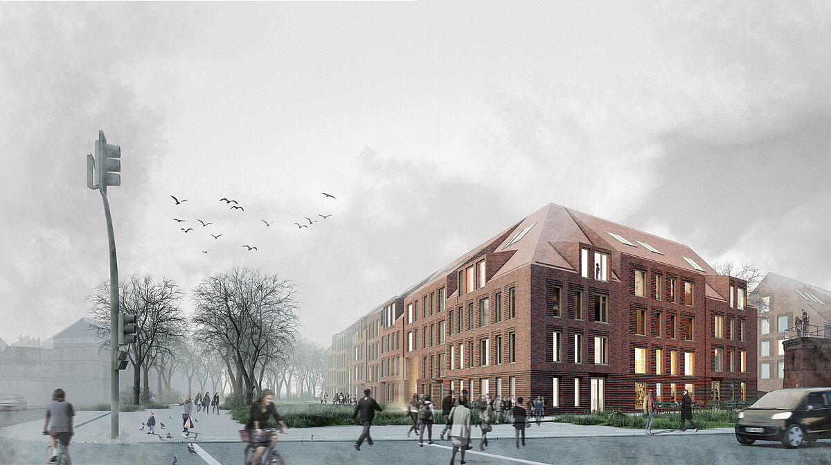 Der Parkplatz Altstadt/Westhafen konnte als Potenzialfläche für die städtebauliche Nachverdichtung mit neuem Wohnungsbau belegt werden, was im Zuge der Bearbeitung mit weiteren attraktiven Nutzungen ergänzt und bestärkt wurde. Außerdem konnte ein neues Mobilitätskonzept implementiert werden, welches den Fokus auf Car-Sharing und Fahrräder setzt und den Trend, in der Stadt ohne eigenes Auto zu leben, unterstützt. Durch die Verwendung von langlebigen, zeitlosen und nach Möglichkeit nachwachsenden Baustoffen wurde auch das Ziel der Ressourcen- und Energieeffizienz beachtet. Die entworfene Bebauung ist in den städtebaulichen Kontext integriert und löst die vorhandenen Missstände. Auch die Sicht- und Verkehrsachsen konnte mit einbezogen werden. Darüber hinaus wurde die anzunehmende Hochwassergefährdung mit einer Strategie zur Bauvorsorge minimiert, welche sich auch gestalterisch in den Gesamtentwurf einpasst.